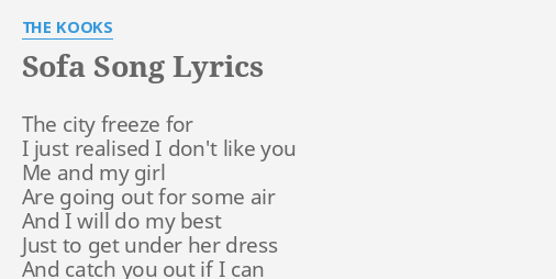 G#m b f# won't you come on over c# at the side of my sofa g#m b f# c# oh won't you come on over. Well, city freeze for i just realised i don't like you / me and my girl are going out for it was hugh, coming up to me after class, i was sat down playing what became sofa song, he came. 5 / 5 2 мнений. Sofa song is a song by english rock band the kooks and is featured on their debut album, inside in/inside out. Well, city freeze for i just realised i don't like you me and my girl are going out for some air and.